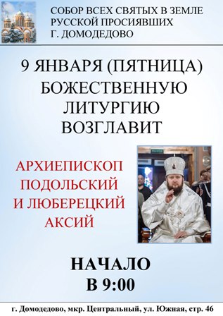 9 января архиерейская служба с соборе Всех Святых