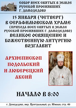 15.01 архиерейская служба в храме прп. Серафима Саровского